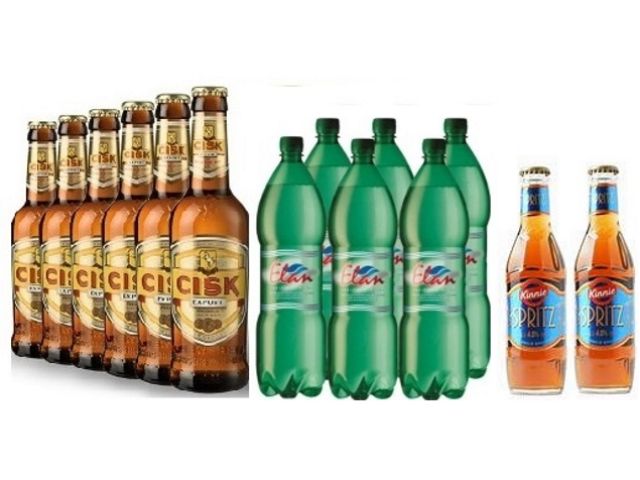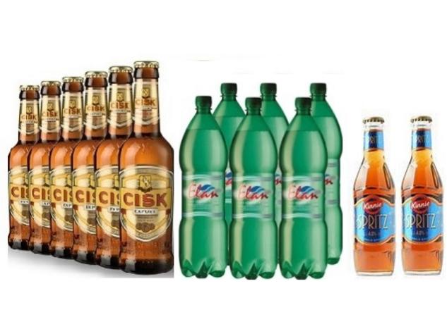 Packet of 6 beer lager export 5 ABV 330ml Packet 6 cisk lager export 330 ml 5 % Elan sparkling water 1.5 L 2 Kinnie Spritz 250ml 4%